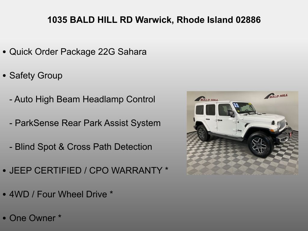 Whether you're conquering the trails or cruising the city streets, the 2025 Jeep Wrangler Sahara is a true icon of capability and style. With its uncompromising off-road performance, advanced technology, and exceptional comfort, this Wrangler is the ultimate expression of freedom and adventure. Experience the thrill for yourself â" schedule a test drive today and discover the Wrangler Sahara's unparalleled capabilities.