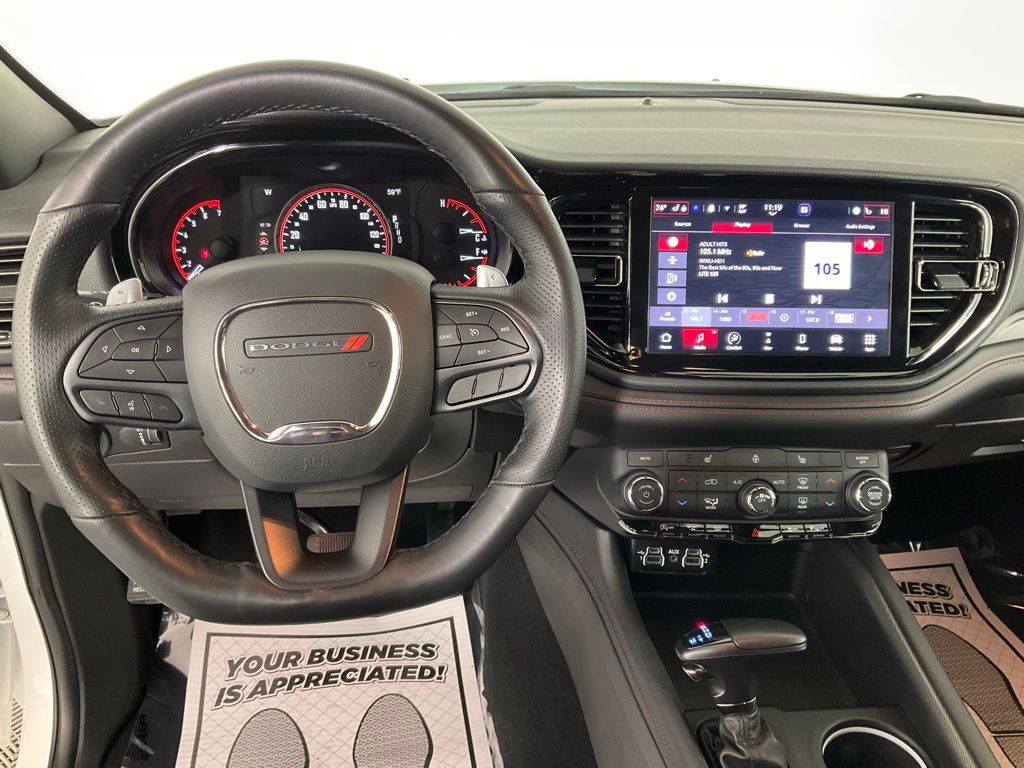 Step inside the Durango GT and be captivated by its premium interior. Luxurious touches, such as the heated steering wheel, power liftgate, and remote vehicle starter, elevate your driving experience. The advanced infotainment system with navigation, Apple CarPlay, and Android Auto keeps you connected and entertained, while the rear-view camera and parking sensors provide added peace of mind.